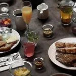 Každé ráno se tu podává bufetová snídaně. Restaurace a la carte Cocks Cows připravuje americká jídla. Je zde také bar v hale.